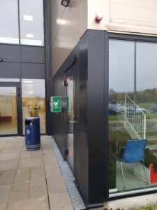 Hjertestarter er nu klar ved centrets hovedindgang